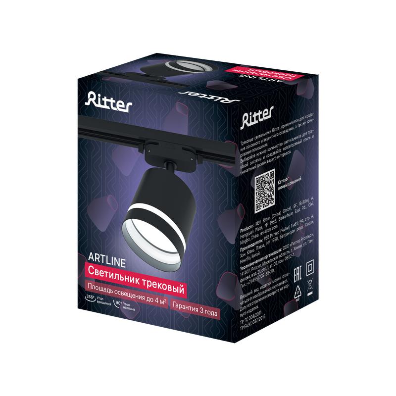 Светильник трековый ARTLINE поворотный 85х85х80мм GX53 230В алюм./пластик. 4кв.м Ritter 59866 8