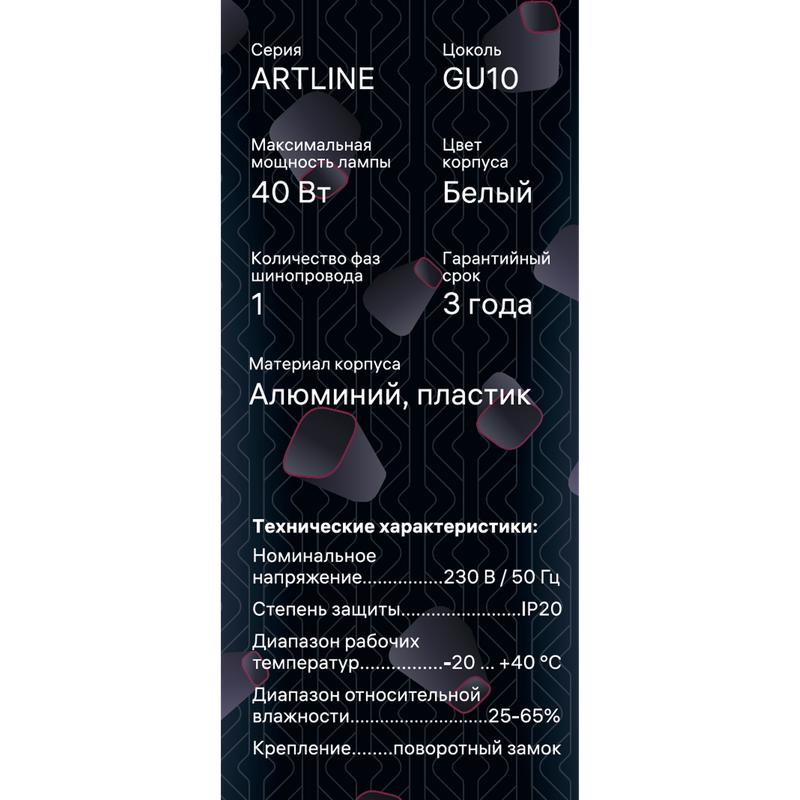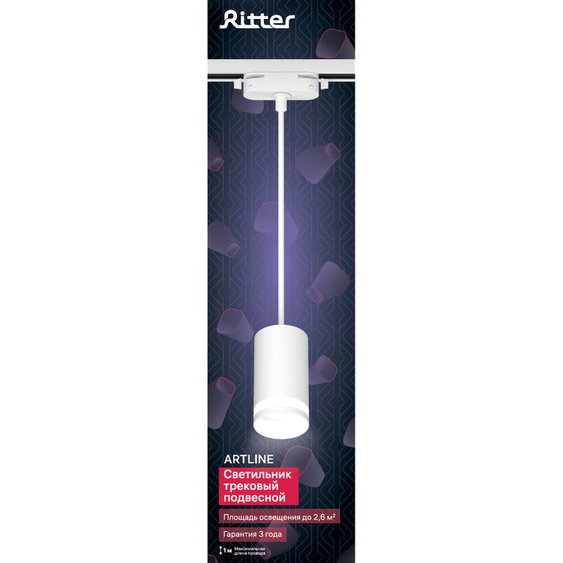 Светильник трековый подвес ARTLINE 55х55х100мм GU10 230В алюм./пластик. 2.6кв.м бел. Ritter 59929 0