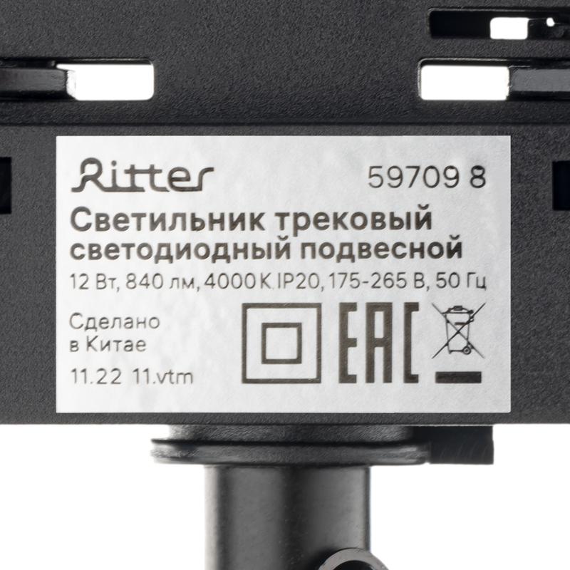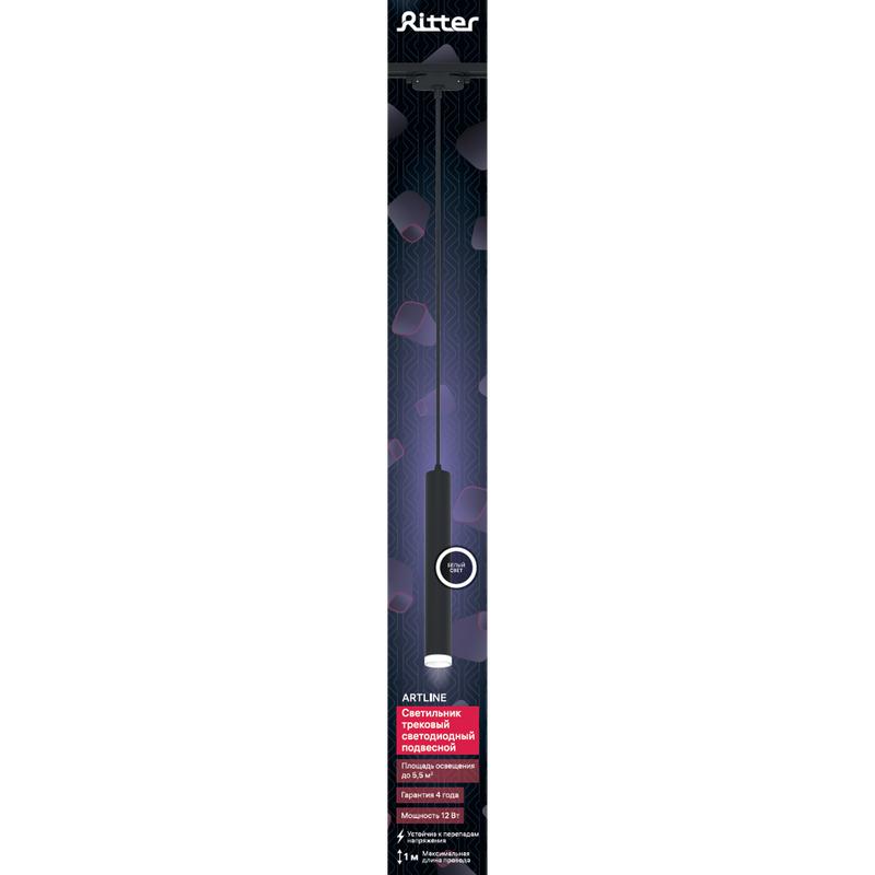 Светильник трековый подвес светодиодный ARTLINE 40х40х300мм 12Вт 840Лм 4000К 230В алюм./пластик. 5.5кв.м черн. Ritter 59709 8