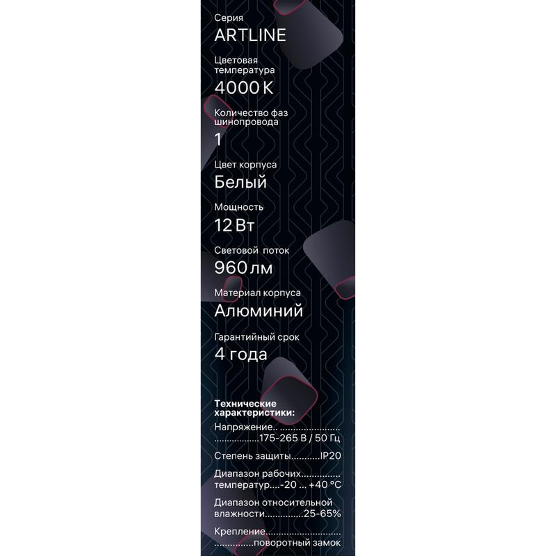 59712 8 | Светильник трековый подвес светодиодный ARTLINE 40х40х300мм 12Вт 960Лм 4000К 230В алюм. 6.4кв.м бел. Ritter