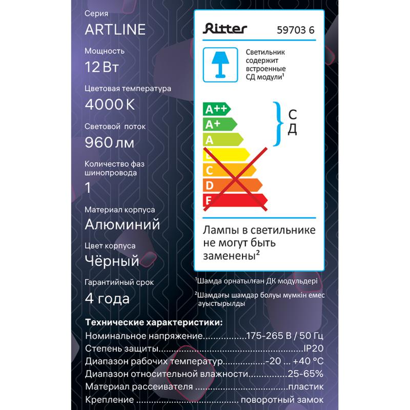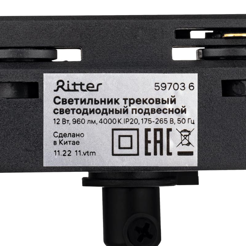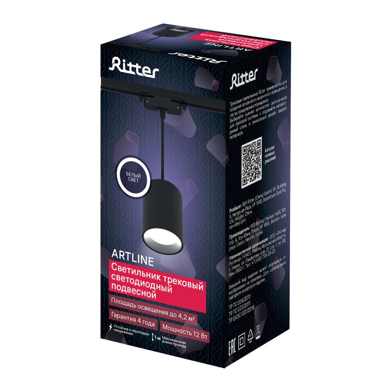 Светильник трековый подвес светодиодный ARTLINE 80х80х100мм 12Вт 960Лм 4000К 230В алюм. 4.2кв.м черн. Ritter 59703 6