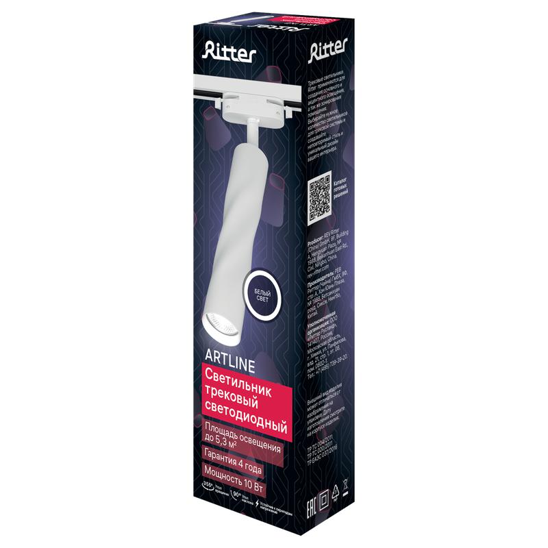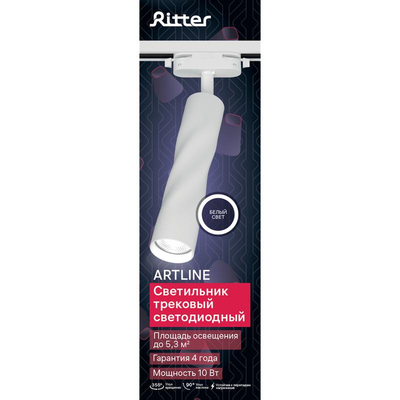 Светильник трековый поворотный светодиодный ARTLINE 55х55х200 10Вт 800Лм 4000К 230В алюм. 5.3кв.м бел. Ritter 59704 3