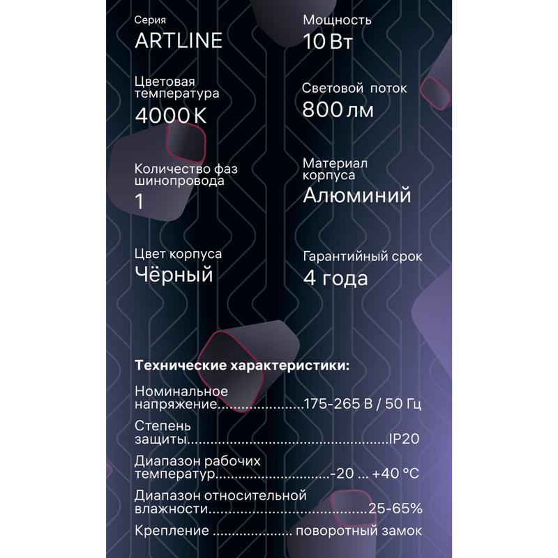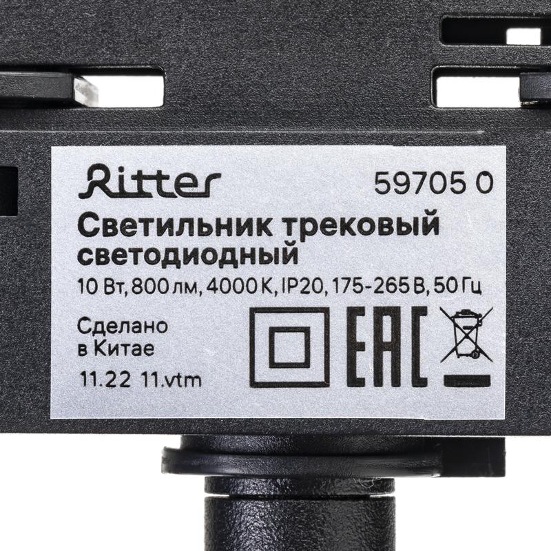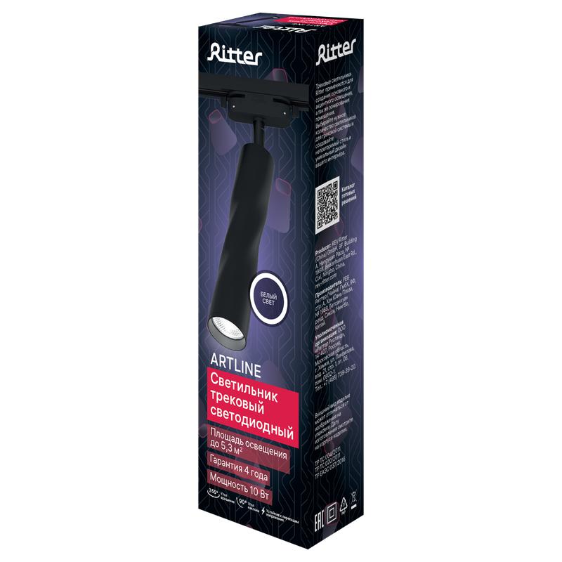 59705 0 | Светильник трековый поворотный светодиодный ARTLINE 55х55х200 10Вт 800Лм 4000К 230В алюм. 5.3кв.м черн. Ritter