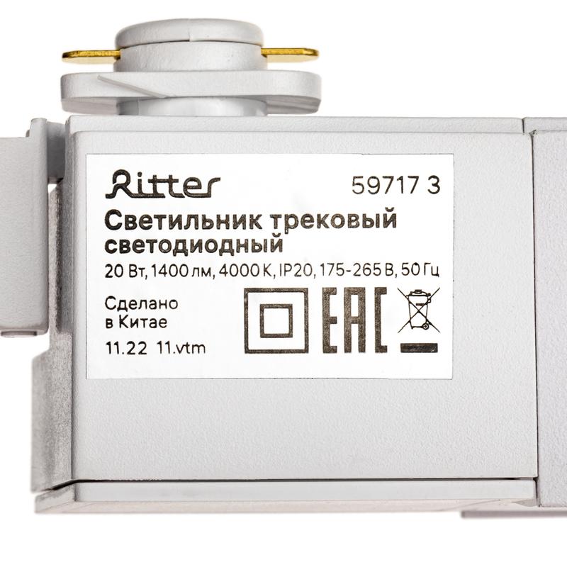 Светильник трековый светодиодный ARTLINE 343х35х40 20Вт 1400Лм 4000К 230В алюм. 9кв.м бел. Ritter 59717 3
