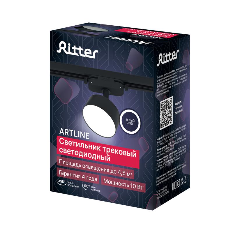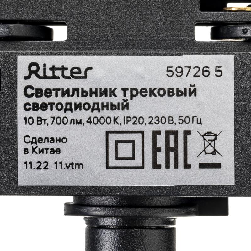 Светильник трековый светодиодный ARTLINE поворотный 75х75х30мм 10Вт 700Лм 4000К 230В алюм. 4.5кв.м черн. Ritter 59726 5