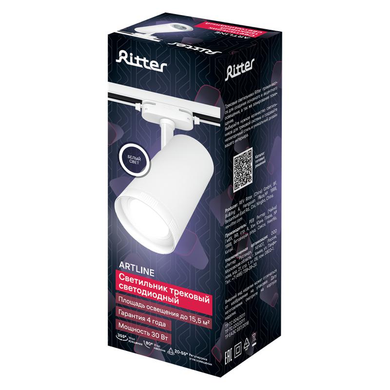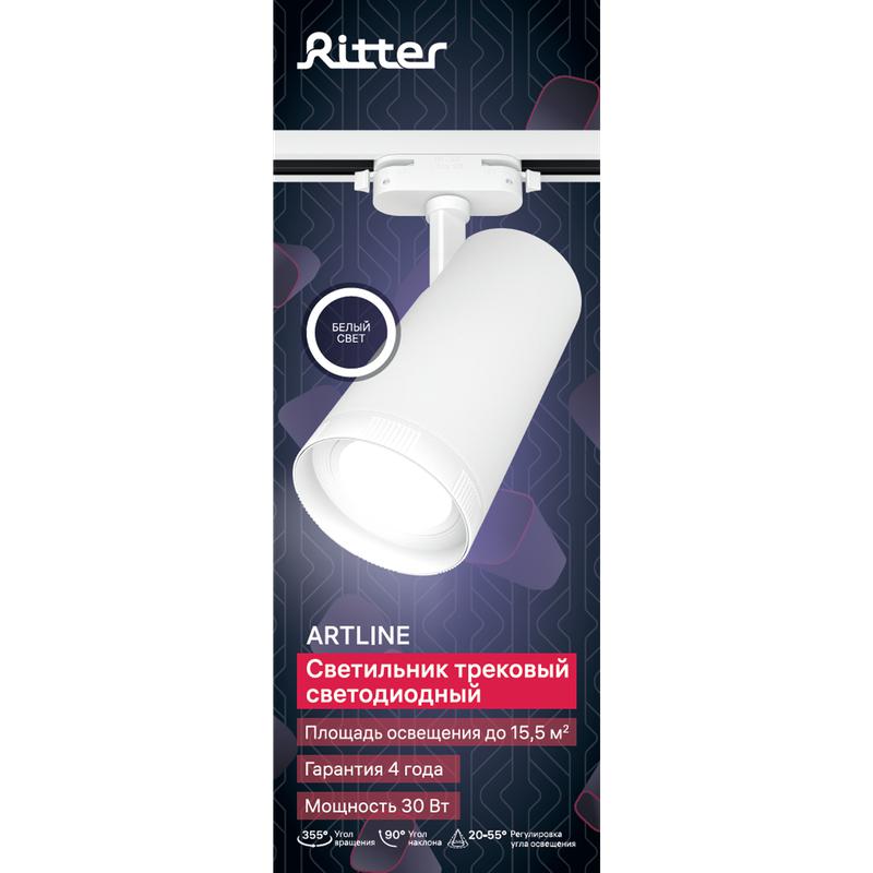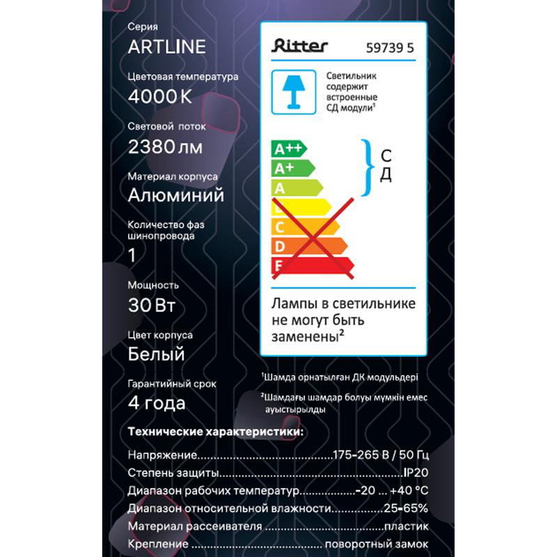 59739 5 | Светильник трековый светодиодный ARTLINE поворотный 80х80х170мм 30Вт 2380Лм 4000К 230В алюм. 15.5кв.м бел. Ritter