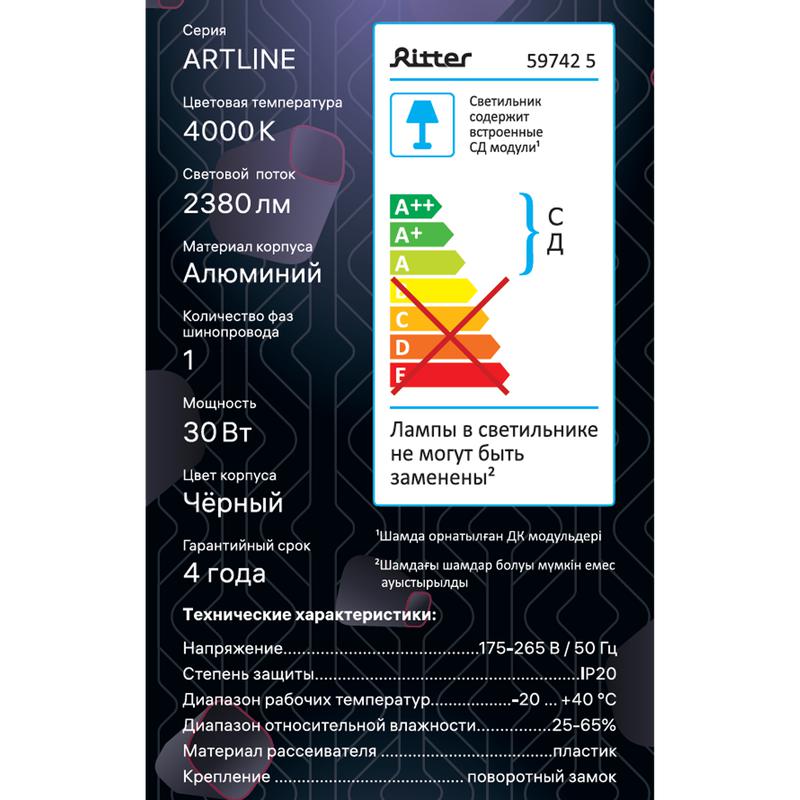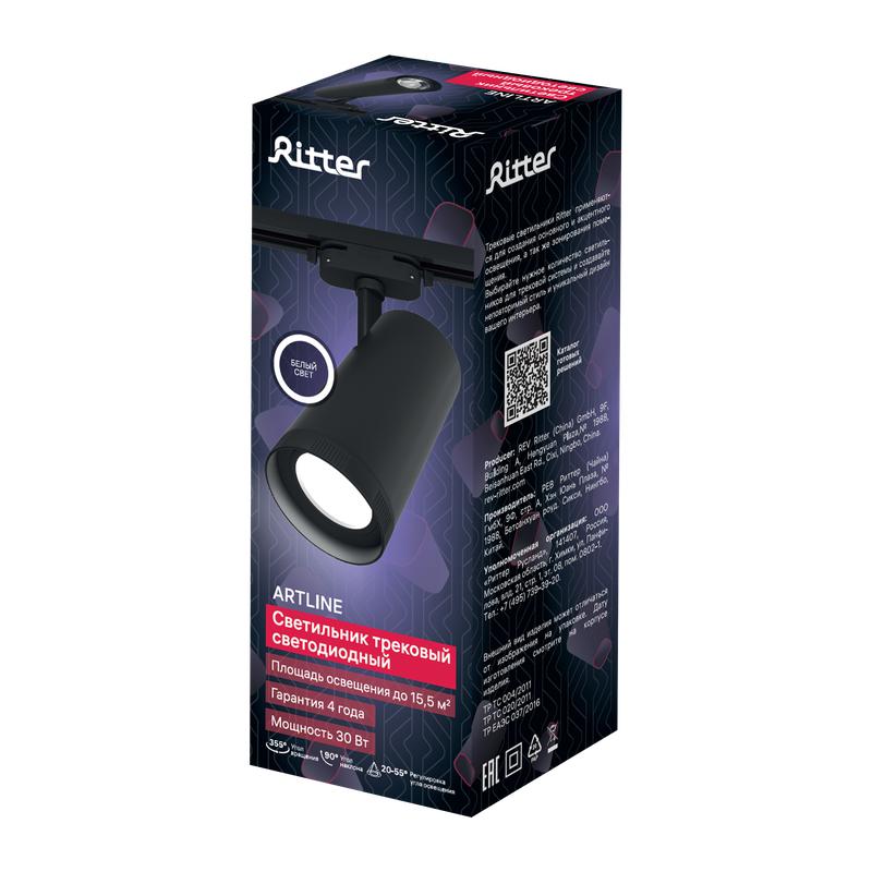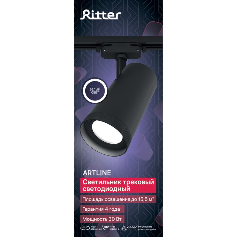 59742 5 | Светильник трековый светодиодный ARTLINE поворотный 80х80х170мм 30Вт 2380Лм 4000К 230В алюм. 15.5кв.м черн. Ritter
