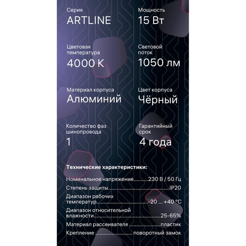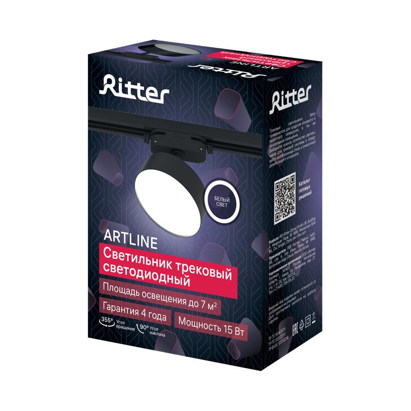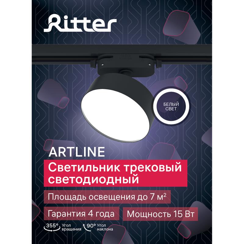 59725 8 | Светильник трековый светодиодный ARTLINE поворотный 95х95х30мм 15Вт 1050Лм 4000К 230В алюм. 7кв.м черн. Ritter