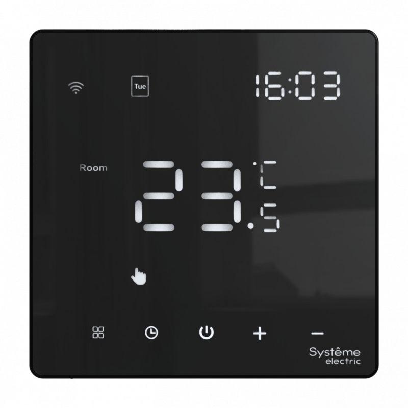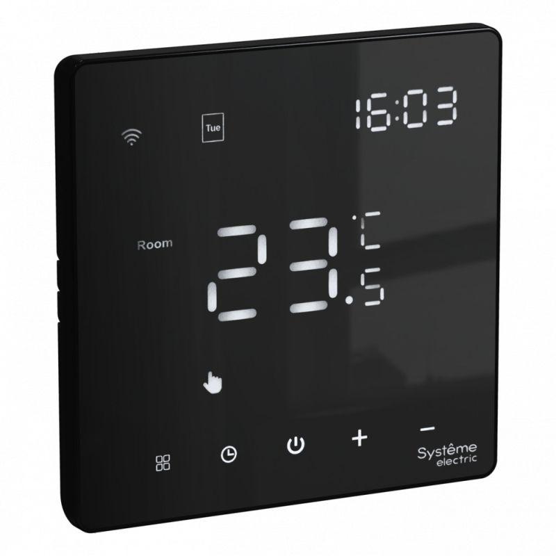 GAL001038 | Термостат программируемый ArtGallery 16А с Wi-Fi для электрич. теплого пола моноблочный черн. SE