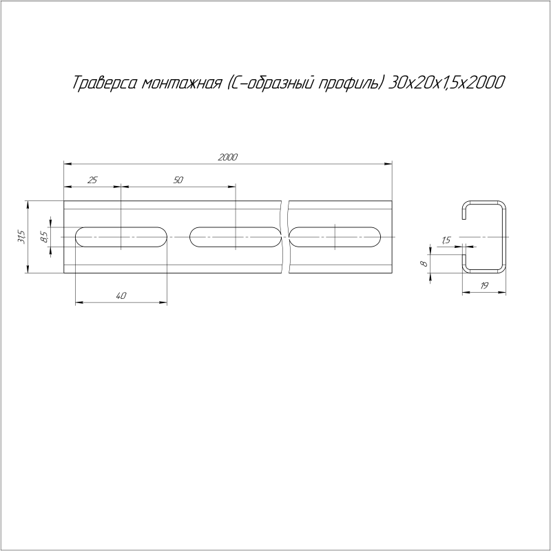 PR16.1157 | Траверса монтажная С-образ. 30х20 L2000 сталь 1.5мм Промрукав