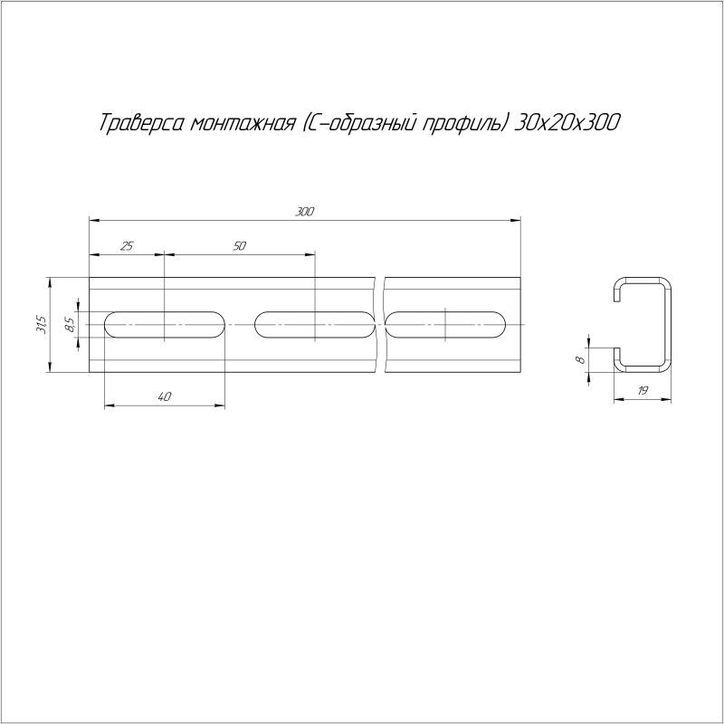 PR16.1132 | Траверса монтажная С-образ. 30х20 L300 сталь 2.0мм Промрукав