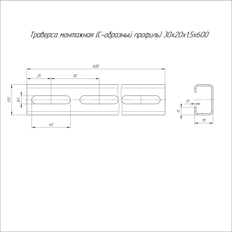 PR16.1151 | Траверса монтажная С-образ. 30х20 L600 сталь 1.5мм Промрукав