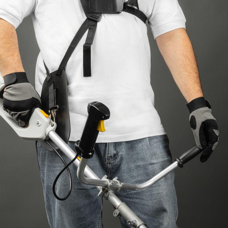 Триммер легко разбирается на две части, что облегчает его хранение и транспортировку. Эргономичные велосипедные рукоятки снимают нагрузку с рук пользователя, обеспечивая комфорт при работе.