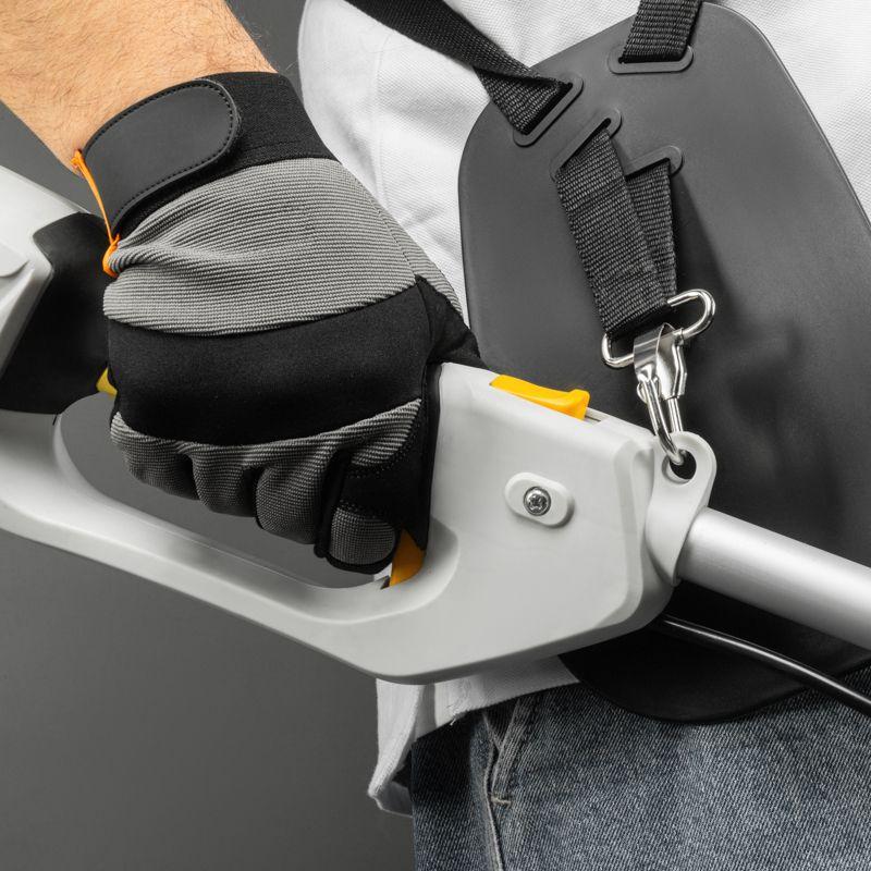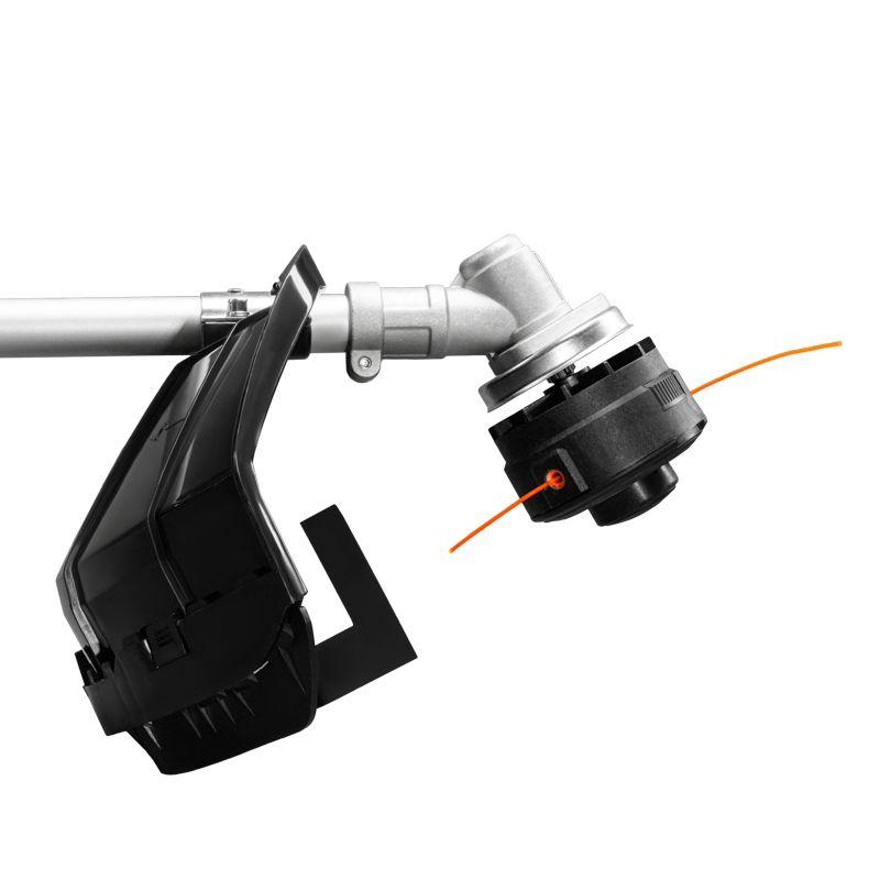 Длину лески можно настроить автоматически, для этого необходимо слегка ударить катушкой об землю во время ее вращения. Все токопроводящие элементы усилены двойной изоляцией, что обеспечивает высокий класс защиты II.