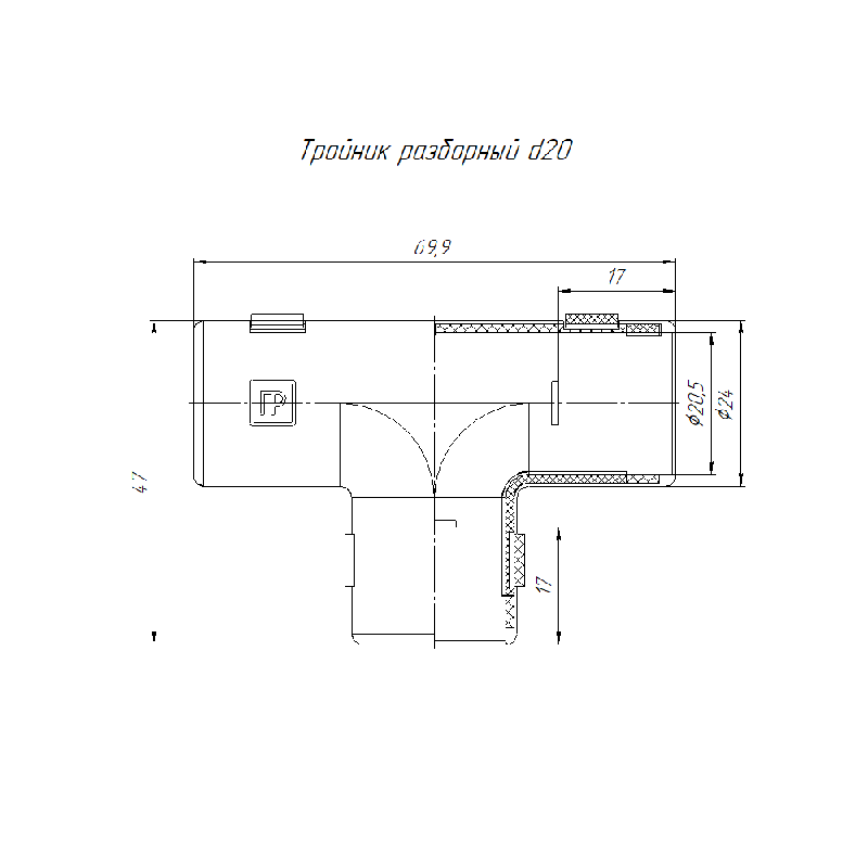 PR.07320 | Тройник разборный d20мм Промрукав