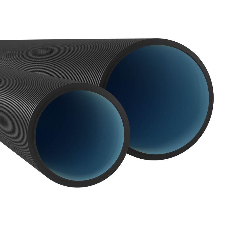 170911 | Труба гофрированная двустенная ПНД жесткая d110мм без протяжки с муфтой для открытой прокладки стойкая к УФ SN8 ПВ-0 черн. (уп.6м) DKC