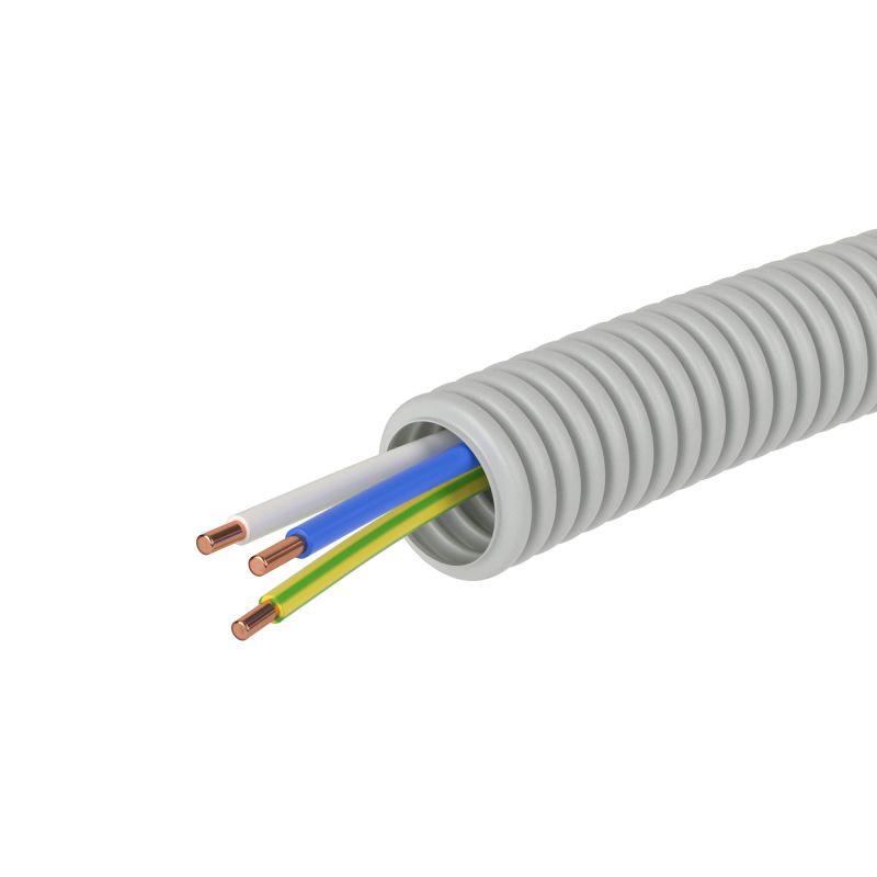 9V91650 | Труба гофрированная ПВХ гибкая d16мм с проводом ПВ-1(ПуВ) 3х2.5 РЭК ГОСТ+ сер. (уп.50м) DKC