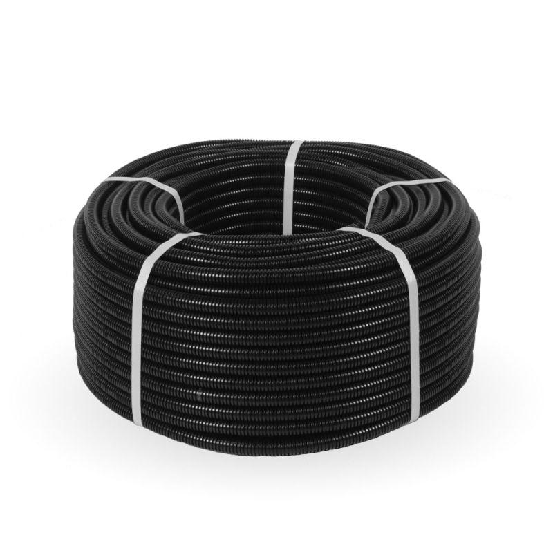 PR02.0388 | Труба гофрированная двустенная ПНД d16мм с протяжкой безгалоген. (HF) черн. (уп.50м) Строитель Промрукав