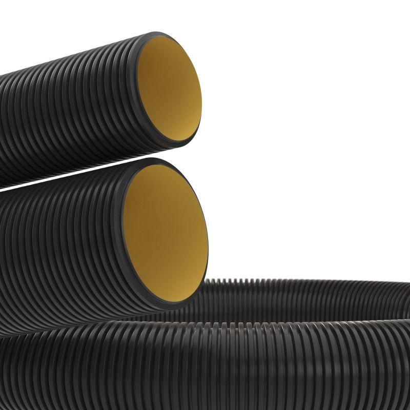 120990A | Труба гофрированная двустенная ПНД гибкая d90мм без протяжки с муфтой для кабельной канализации SN8 450Н черн. (уп.50м) DKC