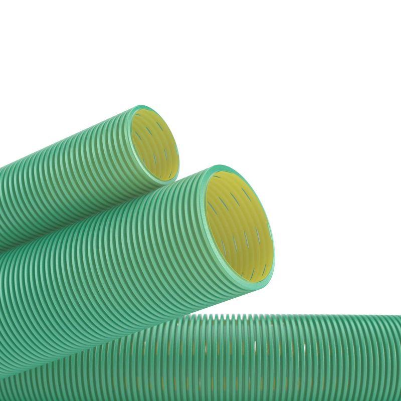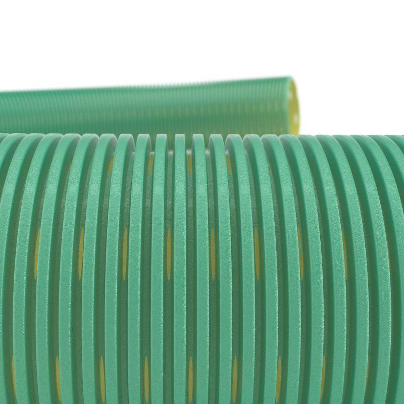 Труба гофрированная двустенная ПНД гибкая дренажная d110мм без фильтра SN8 перфорация 360град. зел. (уп.50м) DKC 140911-8K