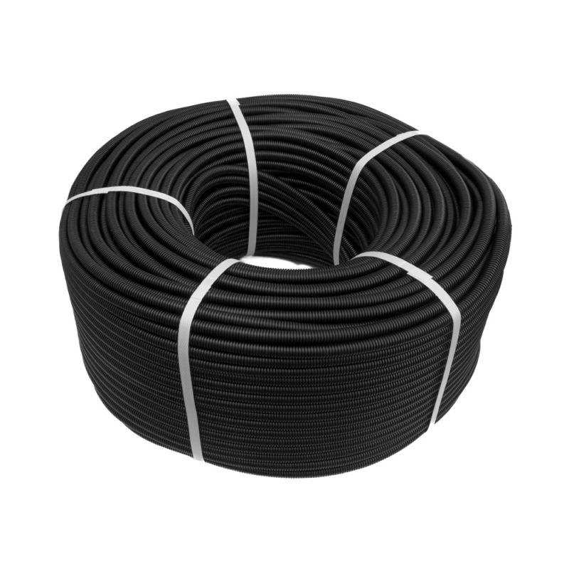PR02.0303 | Труба гофрированная ПА dвн 9.8мм dнар 13.2мм безгалоген. (HF) разрезная черн. (уп.500м) Промрукав