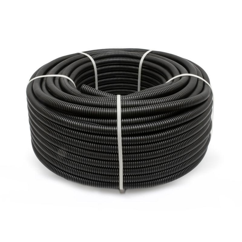 PR02.0326 | Труба гофрированная ПА dвн 9.8мм dнар 13.2мм негорючая (HF) стойкая к УФ разрезная черн. (уп.50м) Промрукав