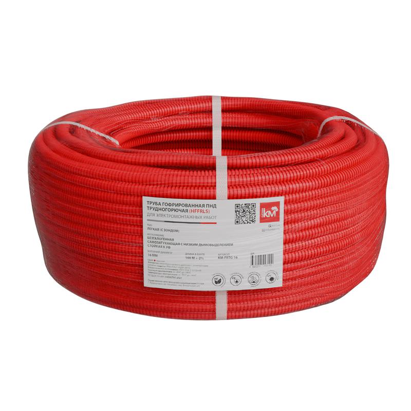 LO62322 | Труба гофрированная ПНД легкая d40мм с протяжкой безгалоген. трудногорючая (HFFRLS) KM-FRTG-40 (уп.15м) КМ