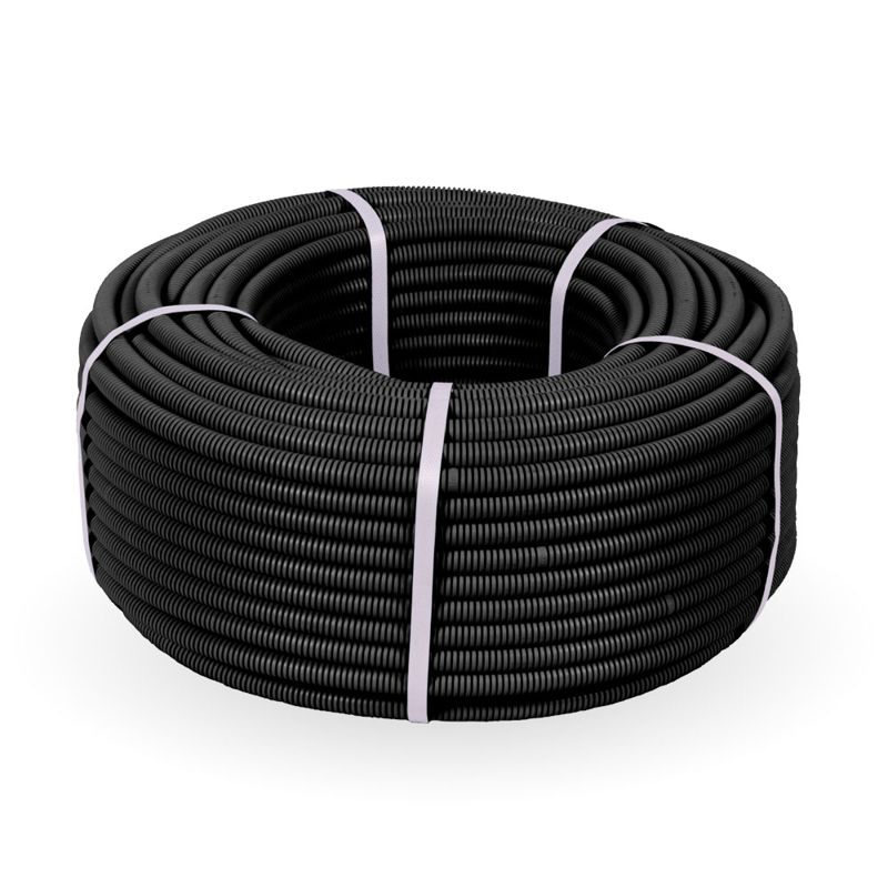 Труба гофрированная ПНД тяжелая d16мм с протяжкой 750 Н безгалоген. (HF) стойкая к УФ черн. (уп.100м) Промрукав PR.021641