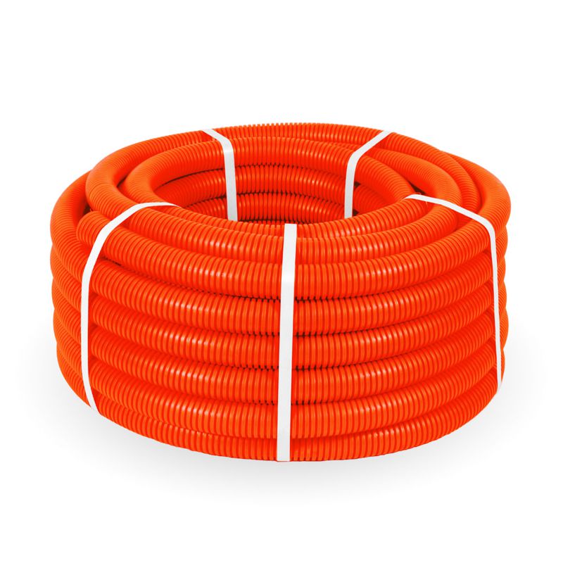PR.023241о | Труба гофрированная ПНД тяжелая d32мм с протяжкой 750 Н безгалоген. (HF) оранж. (уп.25м) Промрукав