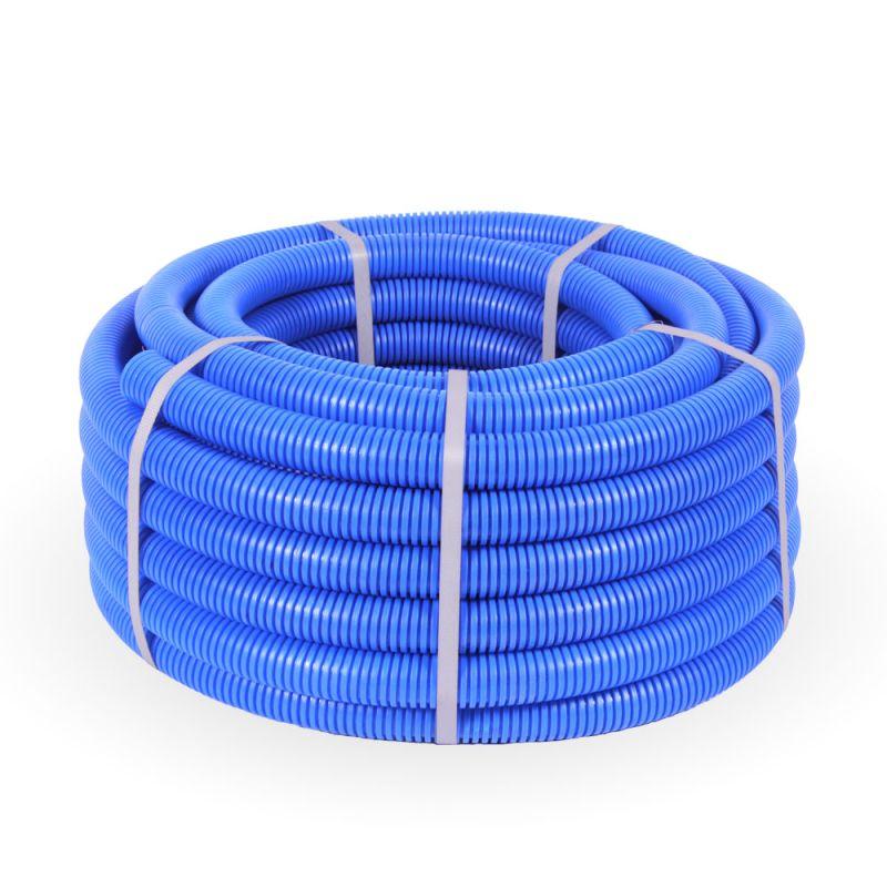 PR02.0078 | Труба гофрированная ПП легкая d20мм с протяжкой 350 Н негорючая (НГ) син. (уп.25м) Промрукав