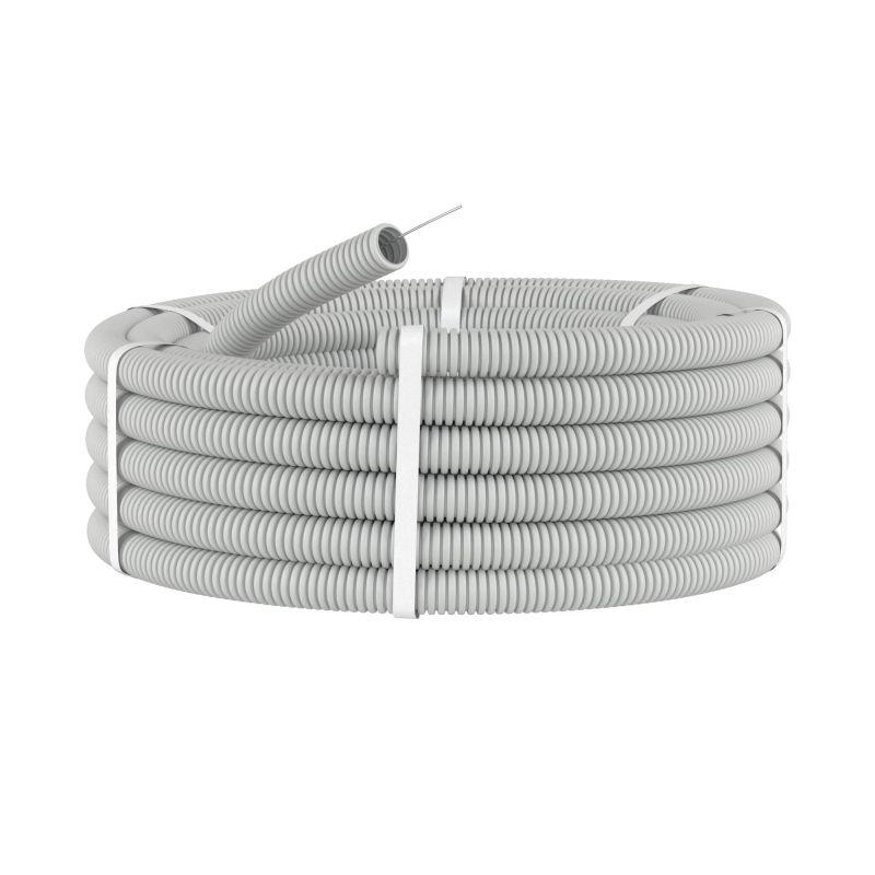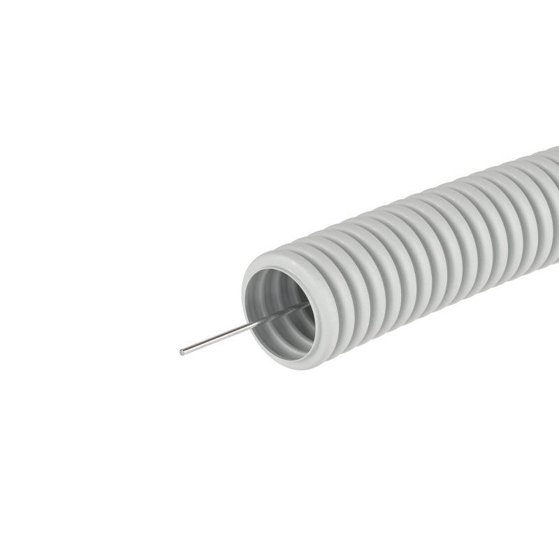 91516 | Труба гофрированная ПВХ гибкая тяжелая d16мм с протяжкой сер. (уп.100м) DKC