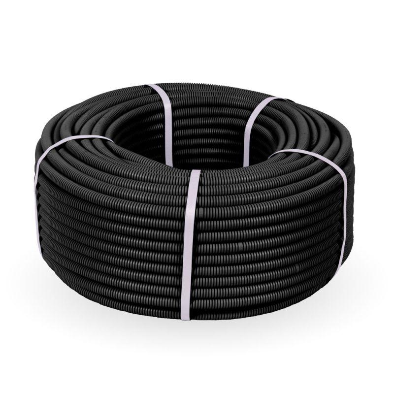 PR01.00385 | Труба гофрированная ПВХ легкая d16мм 350 Н черн. (уп.100м) Промрукав