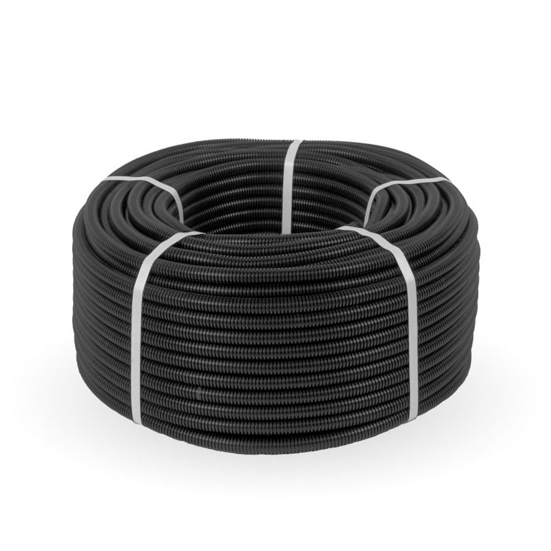 PR01.0054 | Труба гофрированная ПВХ легкая d16мм с протяжкой 350 Н черн. (уп.50м) Промрукав