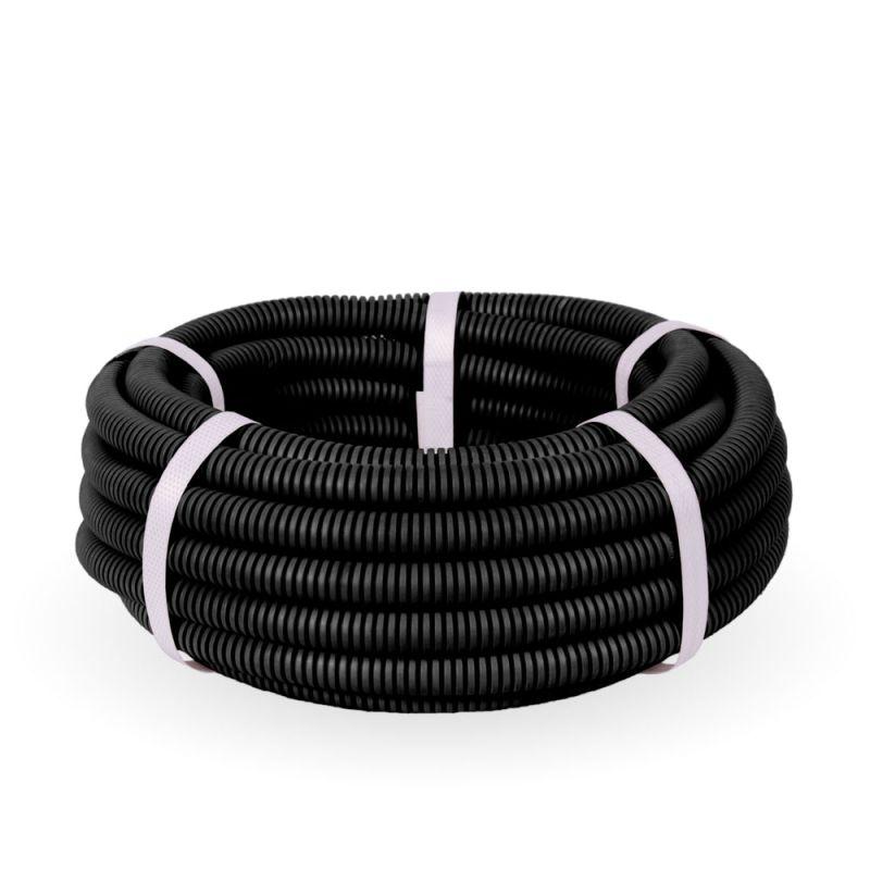 PR01.0145 | Труба гофрированная ПВХ легкая d20мм с протяжкой 350 Н черн. (уп.10м) Промрукав
