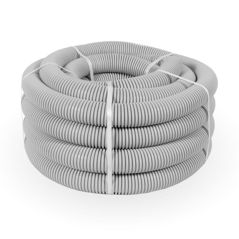 PR.0140411 | Труба гофрированная ПВХ тяжелая d40мм с протяжкой 750 Н сер. (уп.15м) Промрукав