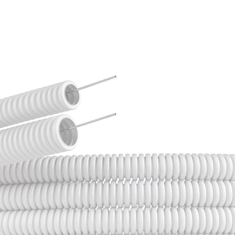81825 | Труба гофрированная ПЛЛ гибкая d25мм с протяжкой безгалоген. (HF) ПВ-0 бел. (уп.50м) DKC