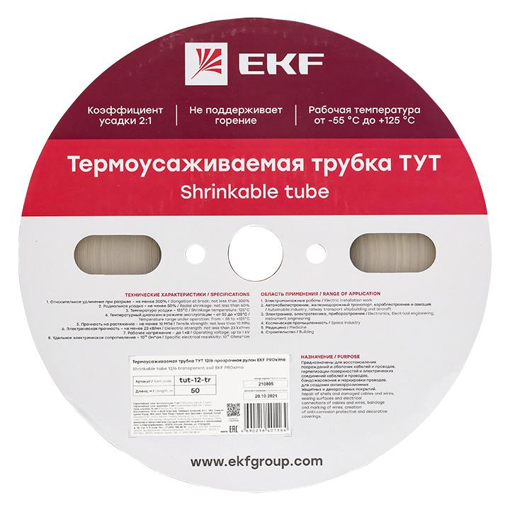 tut-12-tr | Трубка термоусадочная ТУТ 12/6 прозр. PROxima (уп.50м) EKF