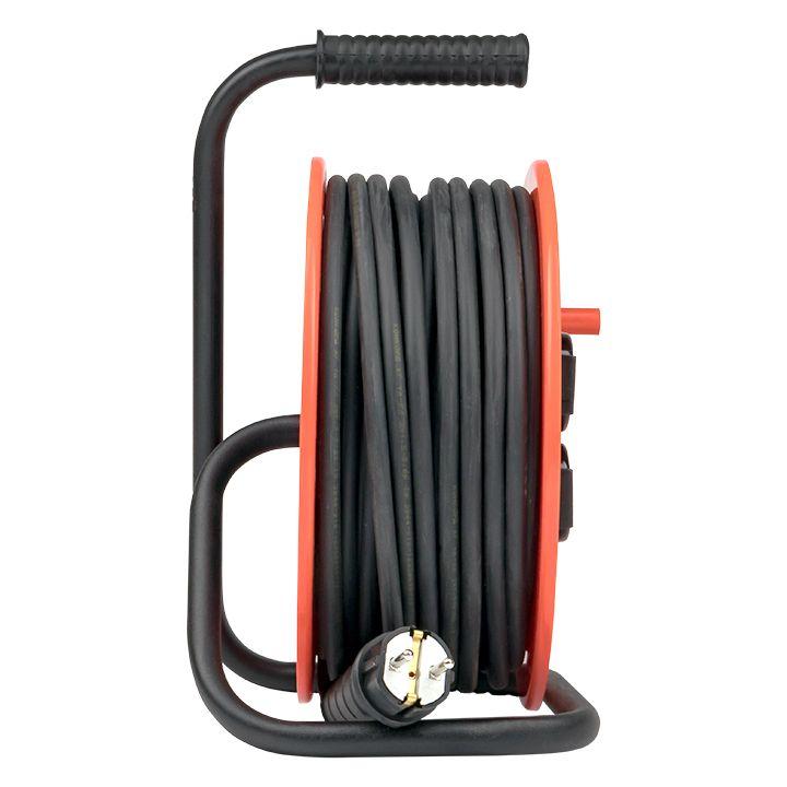 Согласно правилам, на полу не должно быть лишних проводов и удлинителей. Для этого нужно предусмотреть достаточное количество розеток и их равномерное расположение. Однако зачастую на практике рядом не оказывается свободной розетки. В этом случае следует удлинить провод электроприбора, чтобы избежать его натяжения, снижающего безопасность в помещении. Удлинители на катушке Помимо стандартных бытовых удлинителей в продаже можно найти более надежные удлинители на катушках. Это длинные кабели с вилкой на конце, намотанные на прочный барабан со встроенными розетками. В розеточные гнезда вставляются штепсельные вилки электроприборов, а вилка самого удлинителя протягивается до ближайшей сетевой розетки. На рынке представлен широкий ассортимент удлинителей на катушках. Чем больше сила тока, на которую рассчитан удлинитель, тем шире круг оборудования, который можно к нему подключить. Удлинитель на 16 А обеспечит надежное подключение достаточно мощных электроприборов. Также можно подобрать катушку для использования не только внутри помещения, но и на улице
