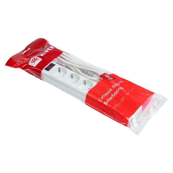 UFA16-310-6-018 | Удлинитель с сетевым фильтром 6х1.8м с заземл. 16А IP20 Блокбастер XL 3.2кВт ПВС 3х1 с выкл. PROxima EKF