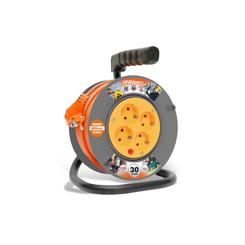 1686 | Удлинитель на катушке 4х30м с заземл. 6А IP20 У10-014 ПВС 3х0.75 термозащита UNIVersal