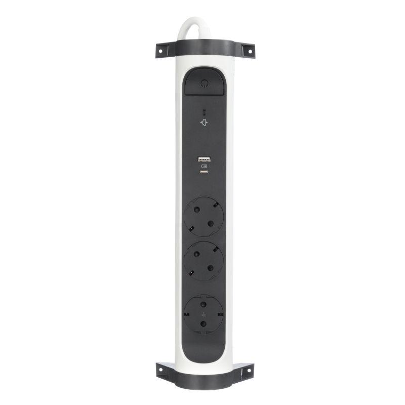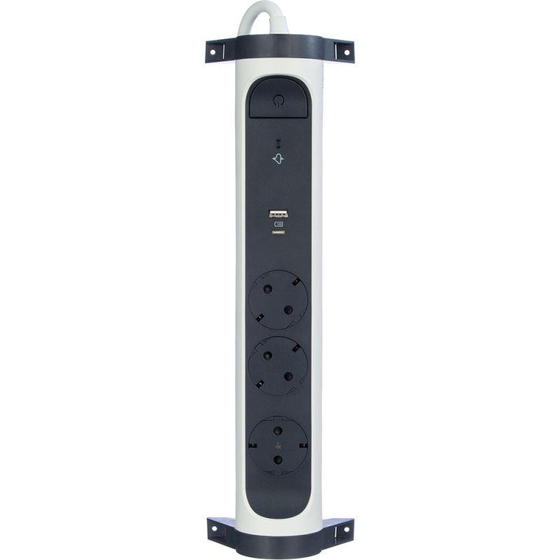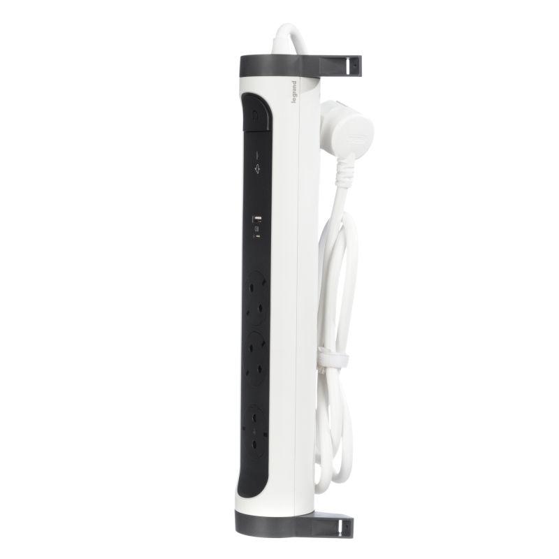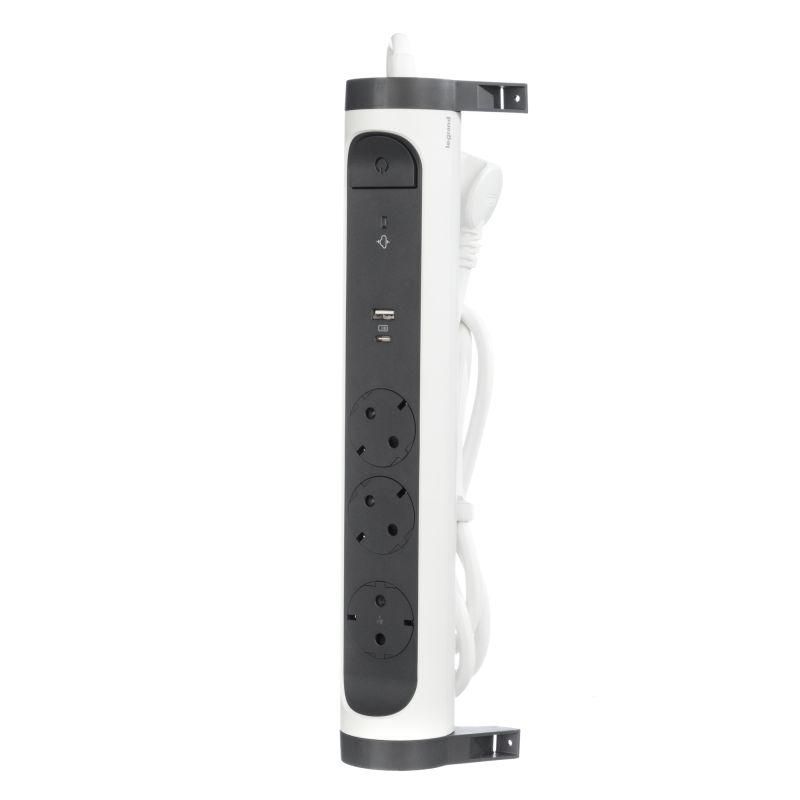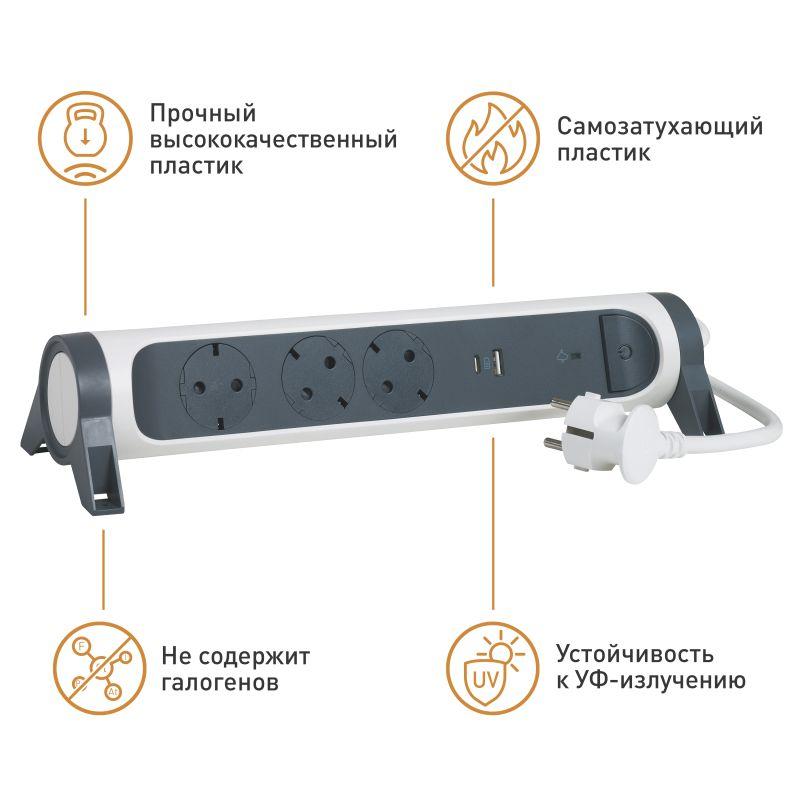 Удлинитель 3х1.5м 16А IP20 Комфорт 3х2P+E 2хUSB A+C 3А с поворотн. осн. защита от импульсных перенапряжений бел./черн. Leg 694508