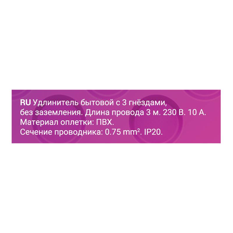 32002 1 | Удлинитель 3х3м без заземл. ПВС 2х0.75 REV