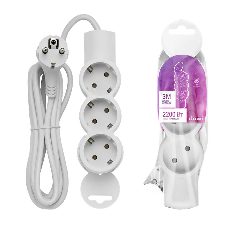 32005 2 | Удлинитель 3х3м с заземл. ПВС 3х0.75 REV