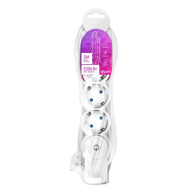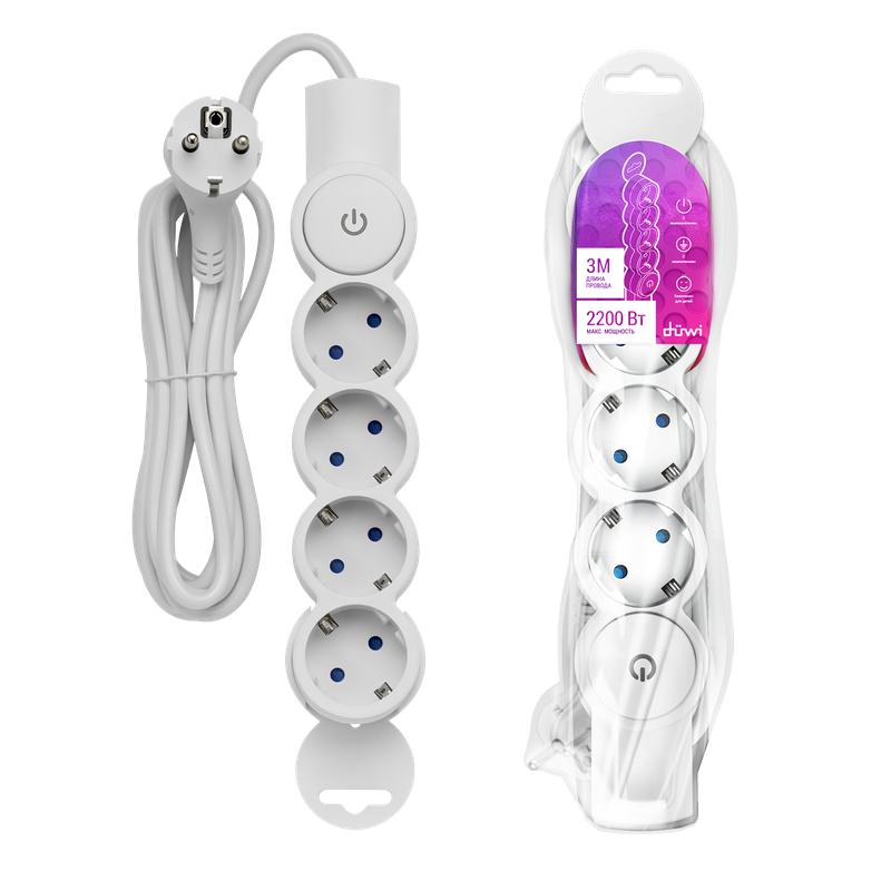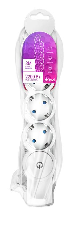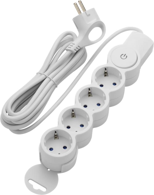 32014 4 | Удлинитель 4х3м с заземл. 10А IP20 ПВС 3х0.75 с выкл. защ. шторки REV