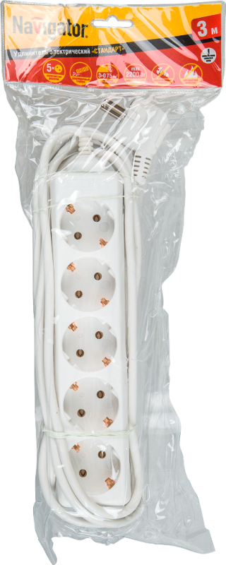 71556 | Удлинитель 5х5м с заземл. 10А IP20 NPE-S-05-500-E-3х0.75 ПВС 3х0.75 Navigator