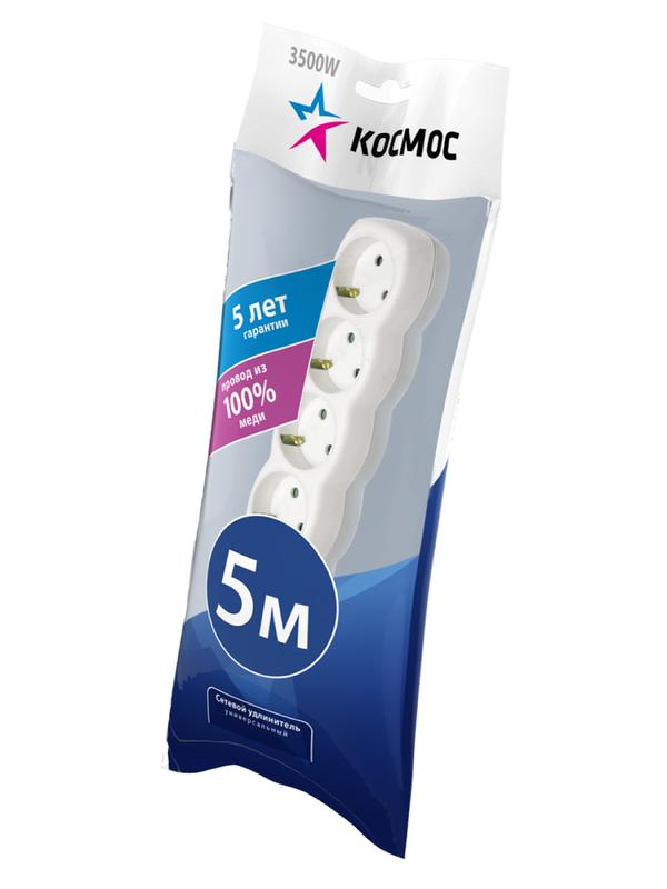 YKsm5m-5g-Z-V(K) | Удлинитель 5х5м с заземл. 16А IP20 ПВС 3х1 с выкл. КОСМОС
