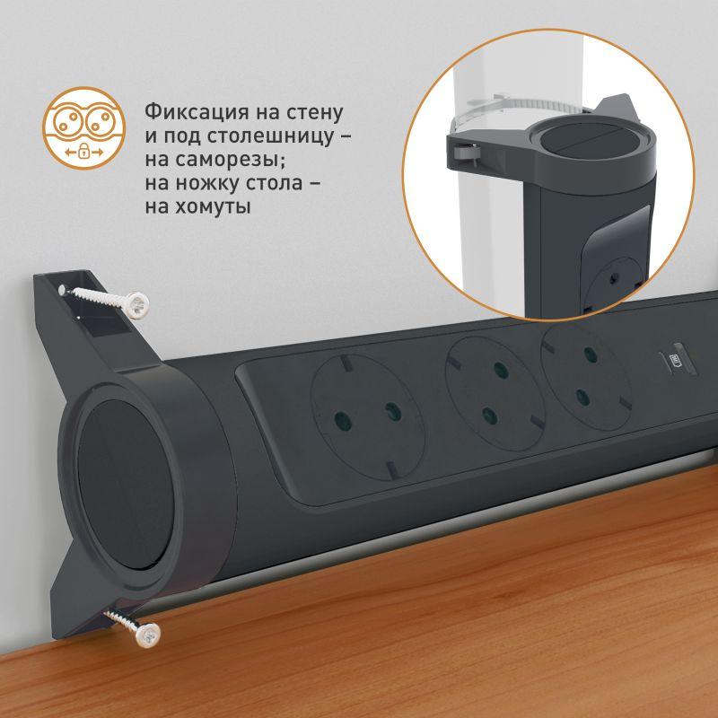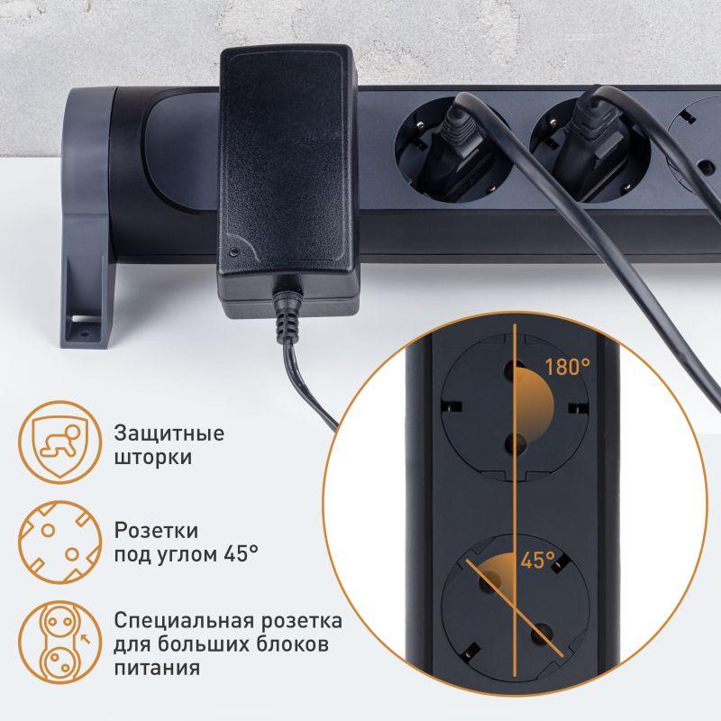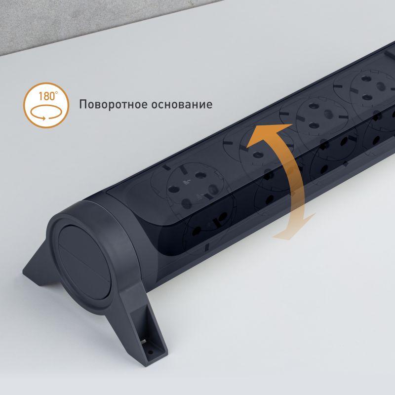 Удлинитель 6х1.5м 16А IP20 Комфорт 6х2P+E с поворотн. осн. черн. Leg 694534