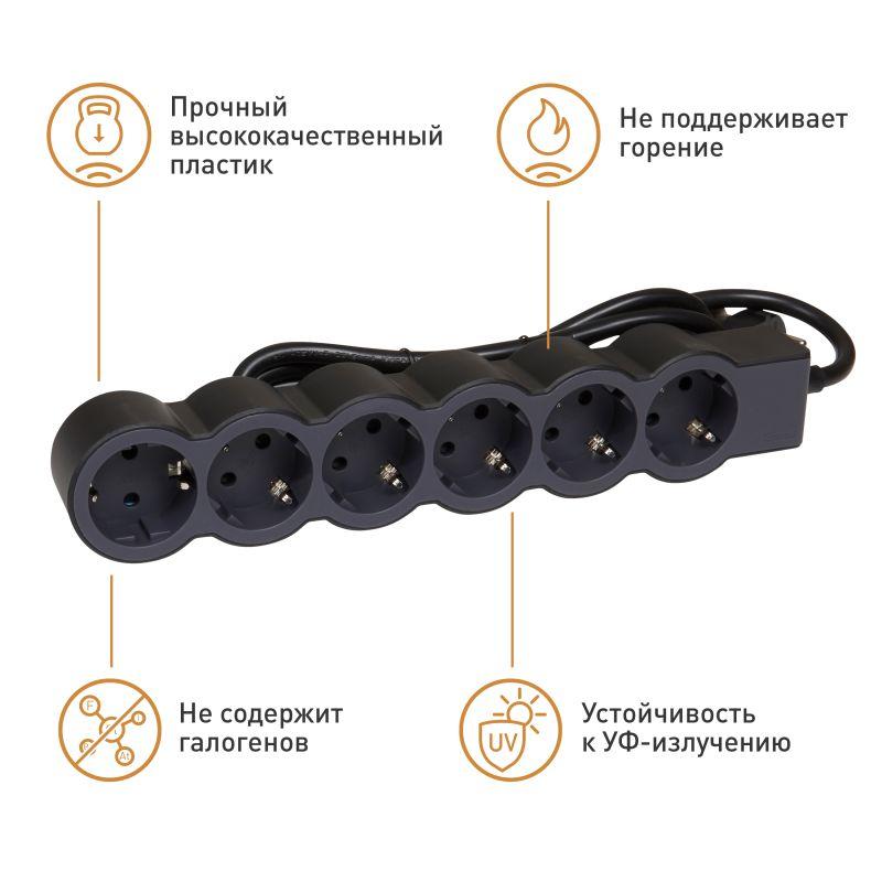 Удлинитель 6х3м 16А IP20 Стандарт 6х2P+E черн. Leg 694566