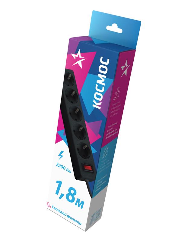 FKsm1.8m-5g(B) | Удлинитель с сетевым фильтром 5х1.8м с заземл. 10А IP20 2.2кВт ПВС 3х0.75 с выкл. с индикатором сети черн. КОСМОС