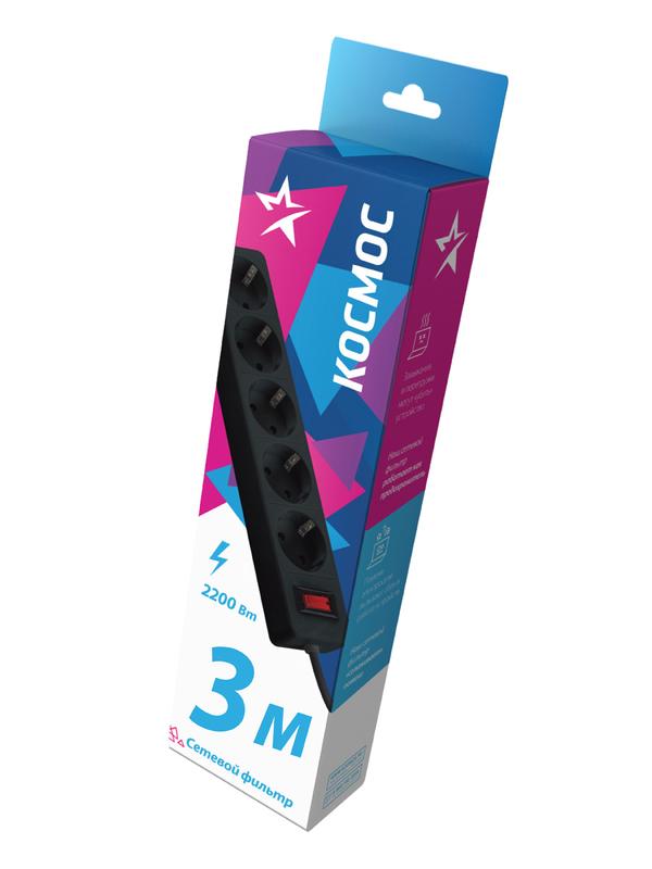FKsm3m-5g(B) | Удлинитель с сетевым фильтром 5х3м с заземл. 10А IP20 2.2кВт ПВС 3х0.75 с выкл. с индикатором сети черн. КОСМОС